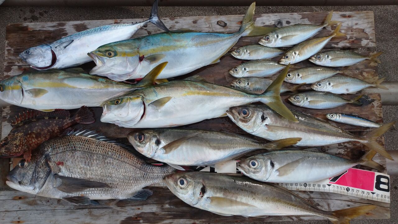 お客さまも大アジ狙いで、イナダ、小アジ、クロダイ等々交えながらの好釣果!