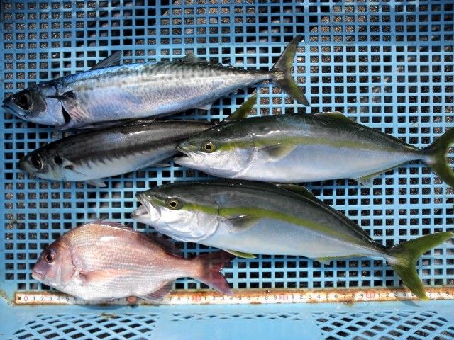 結局、8時半頃から12時までで、イナダの他ワカシが20尾くらい、サバが10くらい、ソウダが5くらい。
