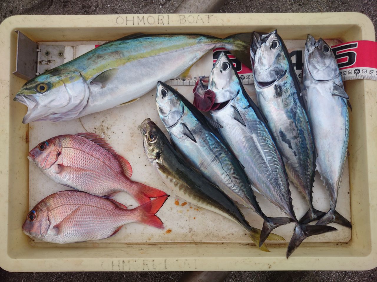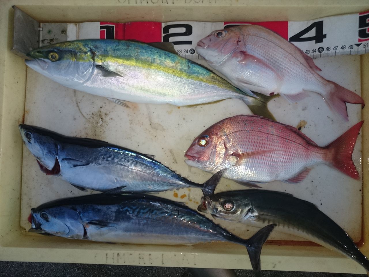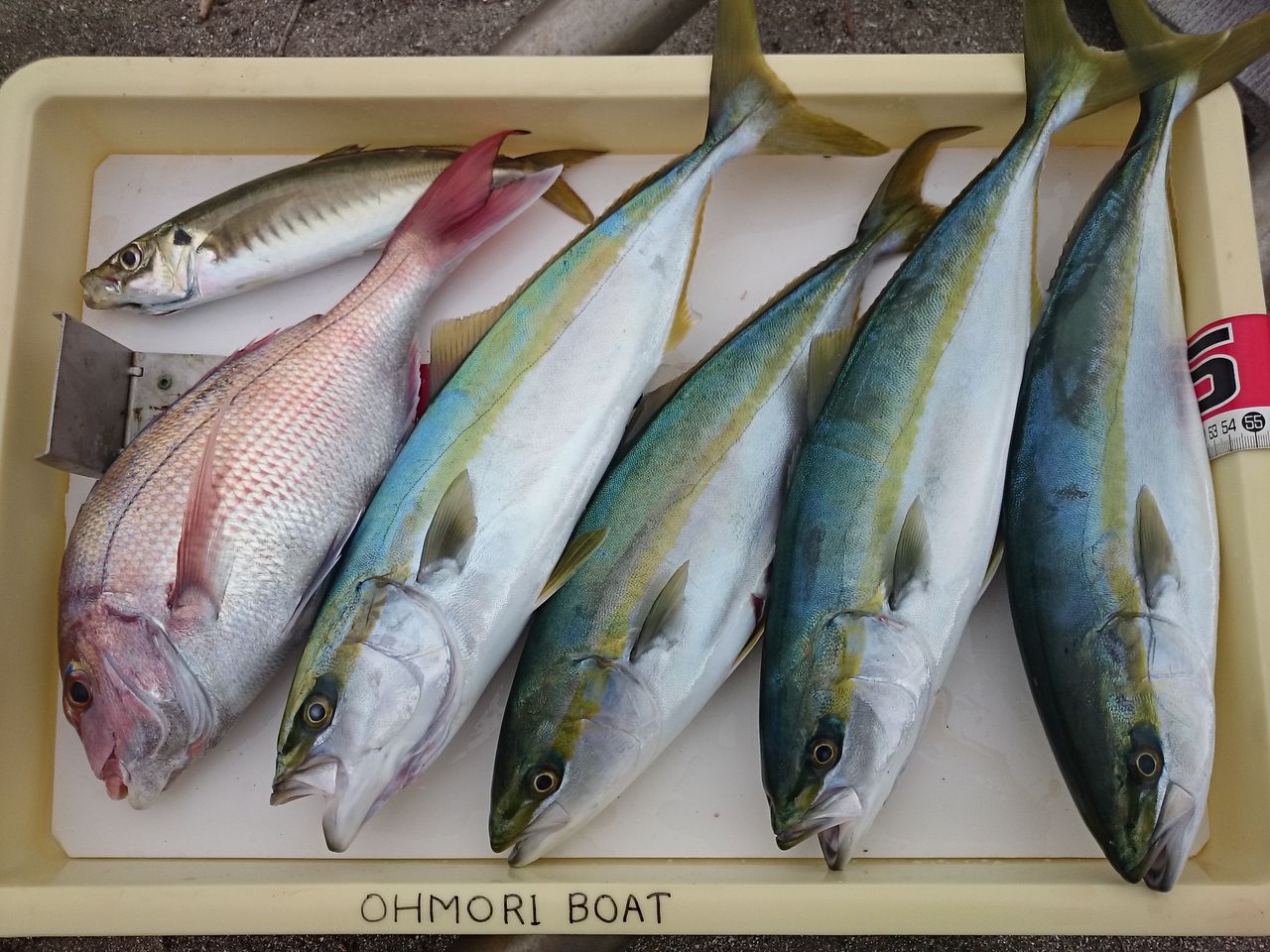 結果はマダイが1尾、イナダが4尾、おまけにマルアジが1尾。