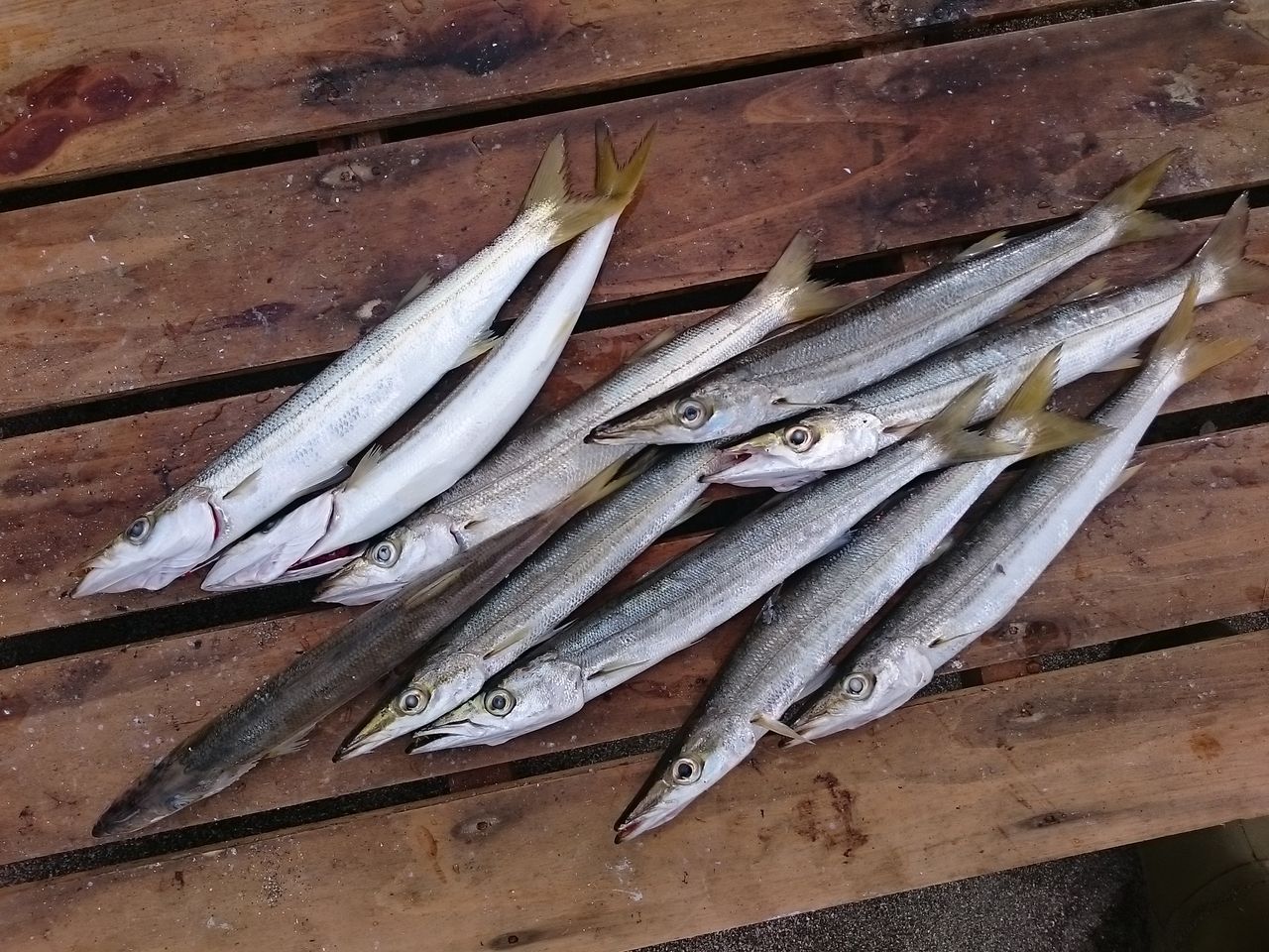 カマスの動きが速すぎて捕まえるのが至難の業です。