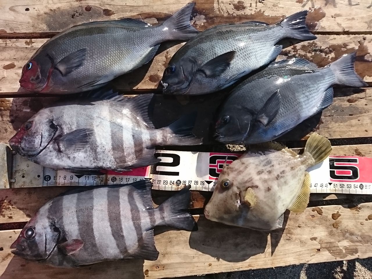 私もイシダイ狙いで出撃したのですが、2投入れたところで風が変わりそのまま釣りは終了し、風が入るまで待機となってしまいました。